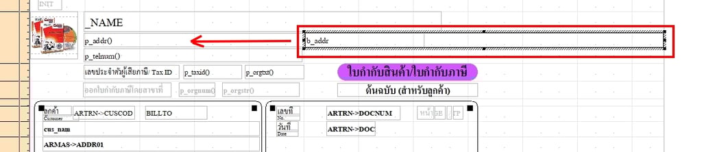 ลากตารางตัวแปร b_addr มาทับกับตารางตารางตัวแแปร p_addr()