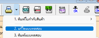 ทดสอบใส่รหัสแผนก และทดสอบพิมพ์ที่ปุ่มเครื่องพิมพ์ในหน้าแก้ไขแบบฟอร์ม ถ้าถูกต้องแล้ว ไปที่ลูกศรข้างเครื่องพิมพ์สีเหลืองอีกครั้ง และเลือกข้อ 4.นำแบบทดสอบไปทับข้อ 1 และสามารถกดพิมพ์ที่ปุ่มเครื่องพิมพ์สีเหลืองได้ทันที