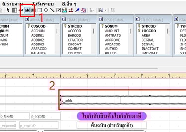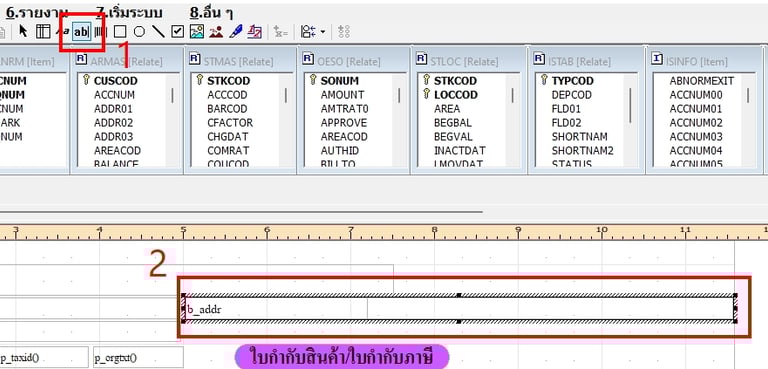 กดปุ่ม "ข้อมูล" (1) จากนั้นคลิ๊กวาดตารางข้อมูล และกำหนดชื่อตัวแปร "b_addr" (2)