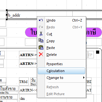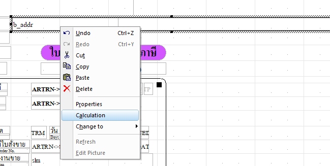 คลิ๊กขวาที่ตารางตัวแปร p_addr() เลือก Calculation