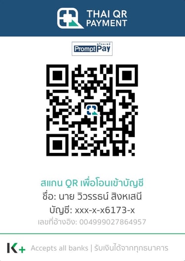 สำหรับท่านที่ต้องการสนับสนุนผู้จัดทำและพัฒนา สามารถสแกน QR CODE หรือ พร้อมเพย์ 0622430988 เพื่อสนับสนุนให้กำลังใจเพื่อพัฒนางานด้านต่างๆในอนาคต ทางผู้จัดทำและพัฒนาขอขอบคุณล่วงหน้าสำหรับการสนับสนุนของท่าน