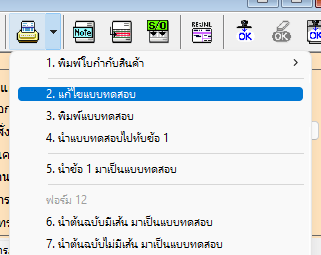 ไปที่หัวข้อต้องการจะแก้ไขแบบฟอร์ม ไปที่ข้างเครื่องพิมพ์สีเหลือง กดปุ่มลูกศร เลือกข้อ 2.แก้ไขแบบทดสอบ