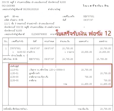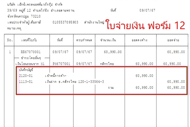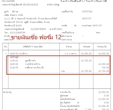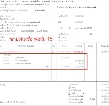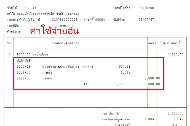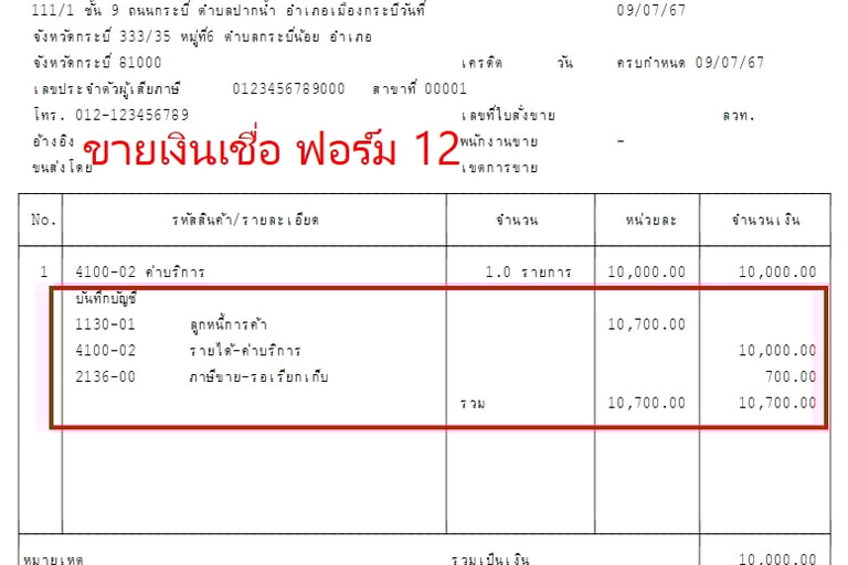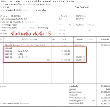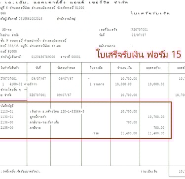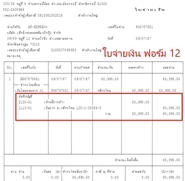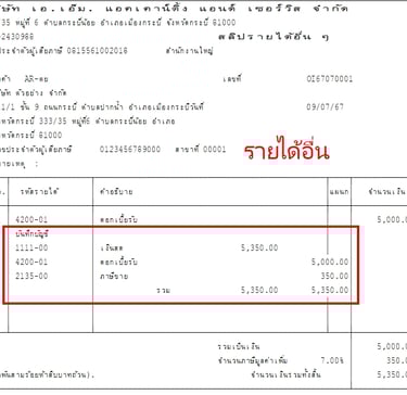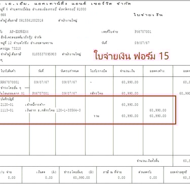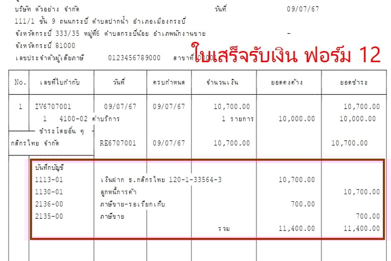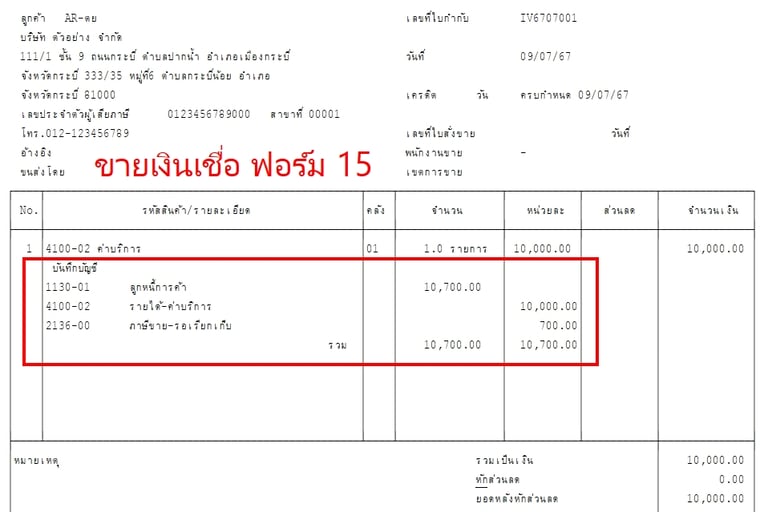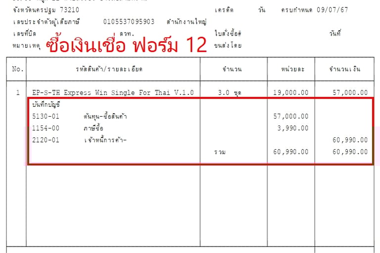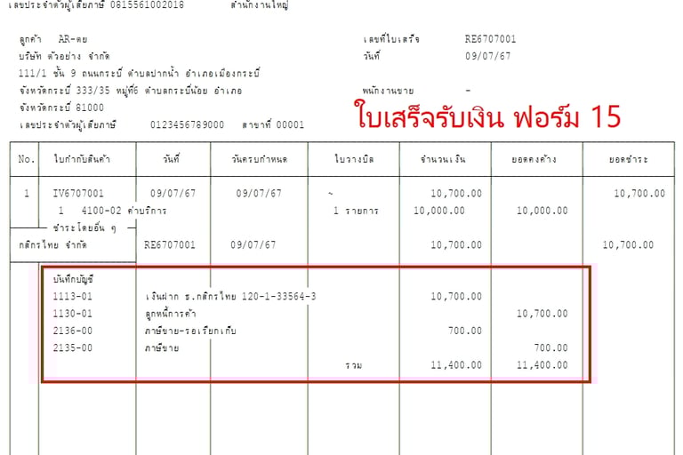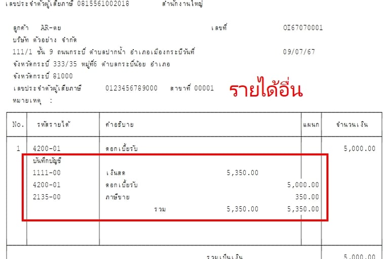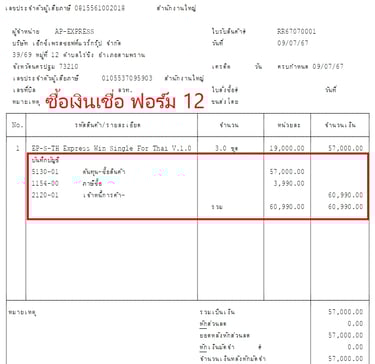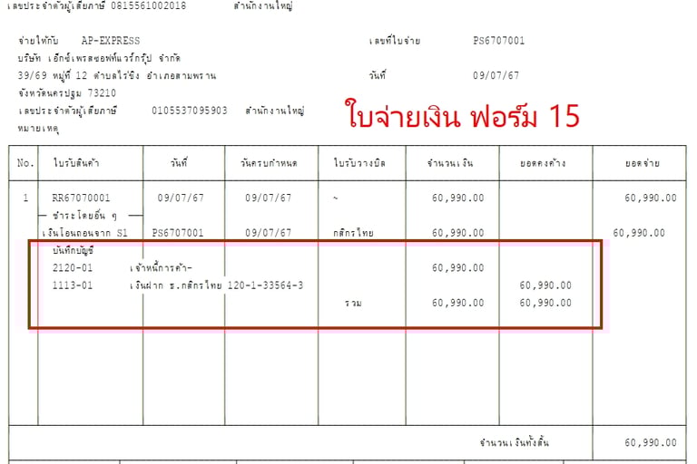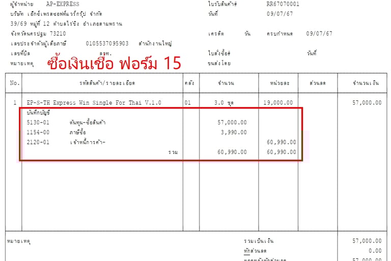 แบบฟอร์มบิล Express แสดงรายการบันทึกบัญชี GL