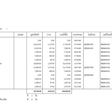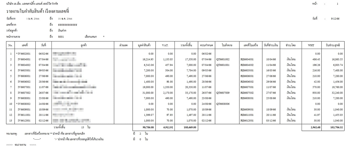 รายงานใบกำกับ (ขายเงินเชื่อ) เรียงตามเลขที่